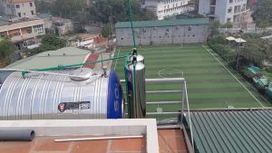 - Lắp đặt trước bể chứa nước sạch trên mái. Cắt ống bơm nước vào bể chứa đưa vào bể lọc.