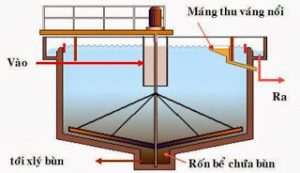 - Phần xả bùn: là phần để loại bỏ bùn ra khỏi bể lắng, nếu không loại bỏ bùn khỏi bể lắng mỗi ngày ở đây sẽ tích tụ thêm 1 lượng bùn nhất định, theo thời gian sẽ đầy cả bể lắng và không còn hiệu suất lắng nữa. Phần xả bùn này có nhiều kiểu lấy bùn ra, nhưng phổ biến là sử dụng motor hoặc làm bể trên cao rồi xả tự do về bể chứa bùn.