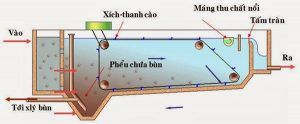 - Phần hút bùn: là phần để loại bỏ bùn ra khỏi bể lắng, nếu không loại bỏ bùn khỏi bể lắng mỗi ngày ở đây sẽ tích tụ thêm 1 lượng bùn nhất định, theo thời gian sẽ đầy cả bể lắng và không còn hiệu suất lắng nữa. Phần hút bùn này có nhiều kiểu lấy bùn ra, nhưng phổ biến là sử dụng motor hoặc làm bể trên cào rồi xả tự do về bể chứa bùn.